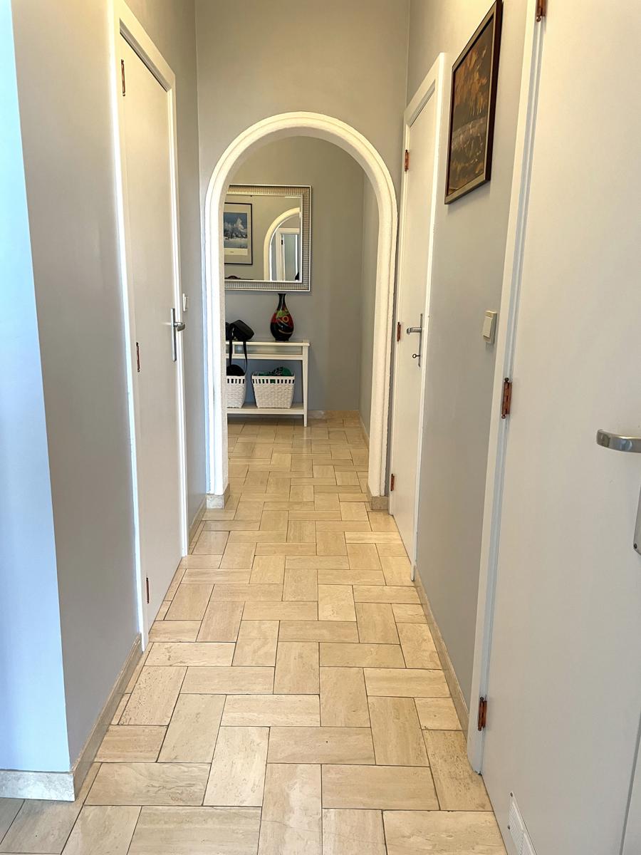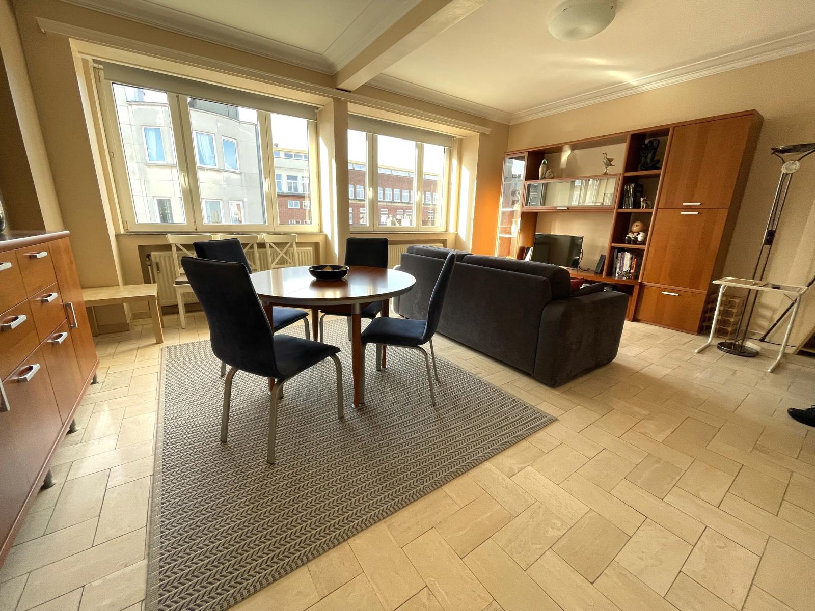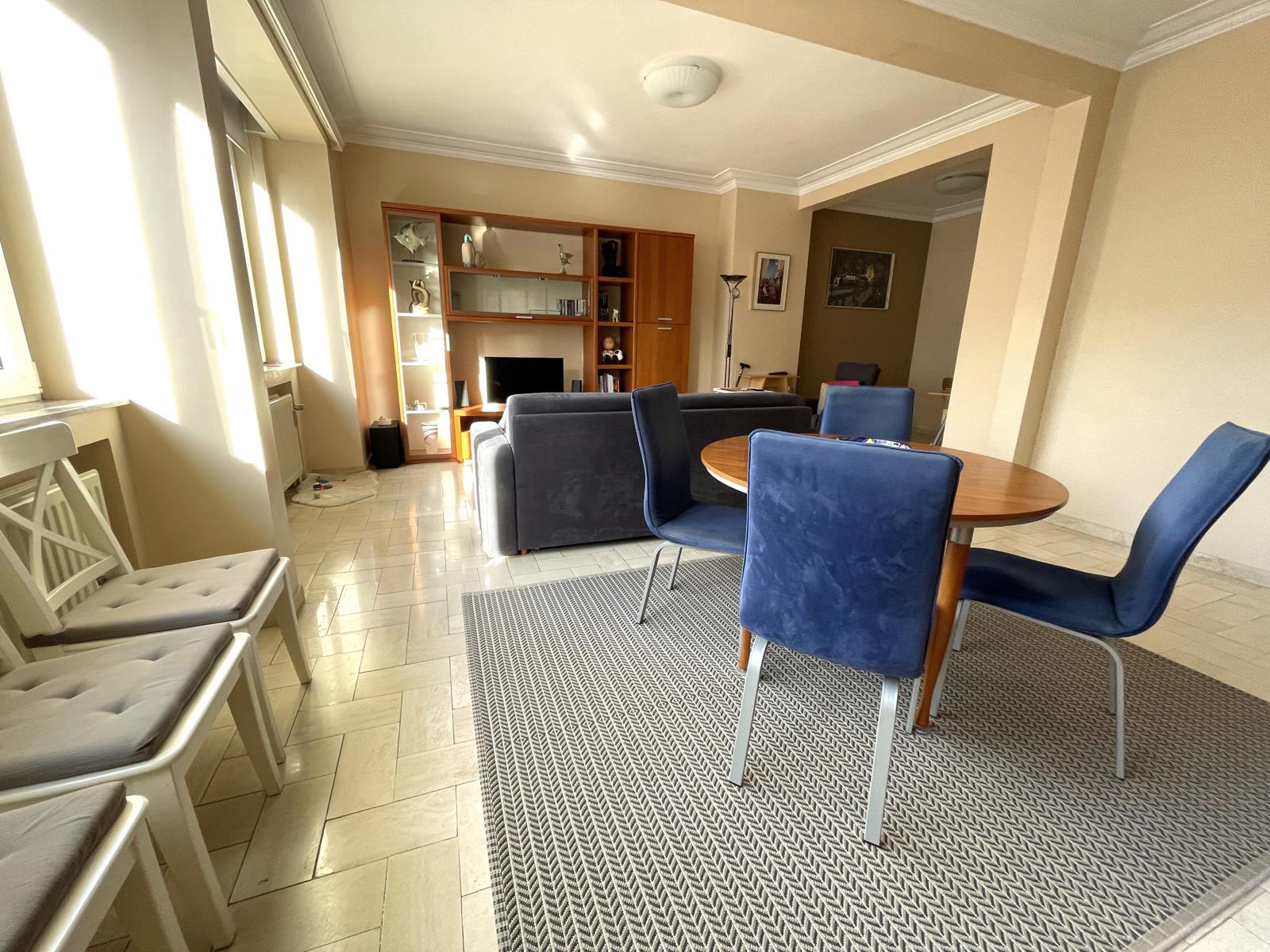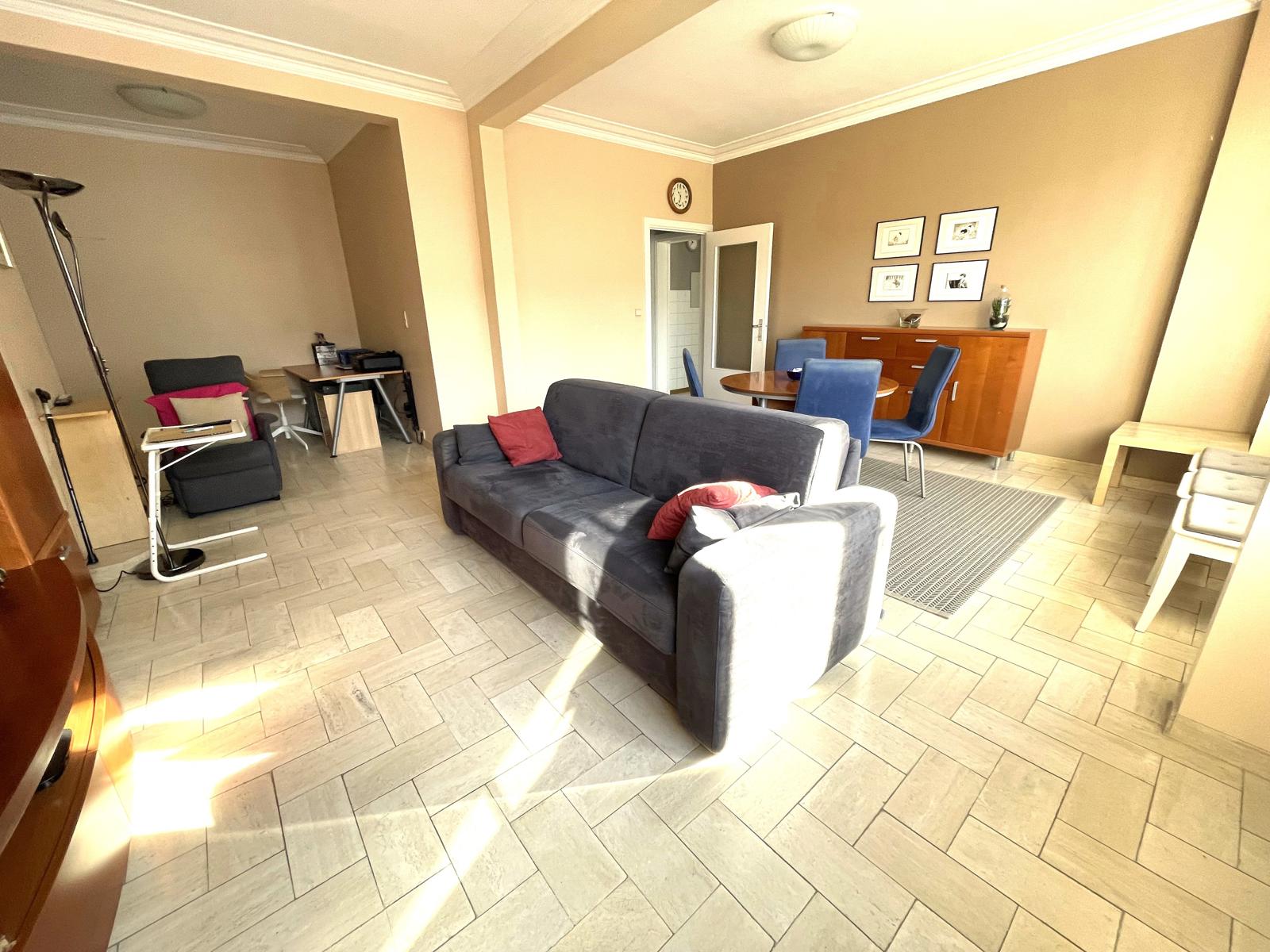 Divers:doubles vitrages pvc partout,carrelage au sol dans les pieces de vie,parquet dans les chambres,PEB:F,cave,charges de copropriété très raisonnables (236 Eur/mois),toit isolé,ascenceur en conformité,petite copropriété de 5 appartements.R.C.:1266 Eur.A voir.