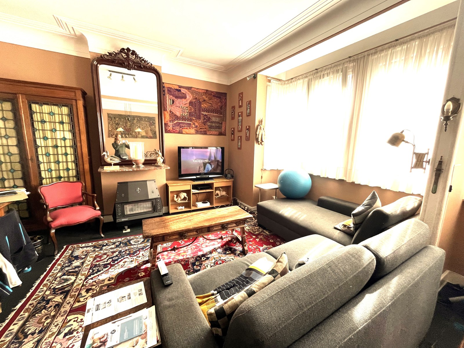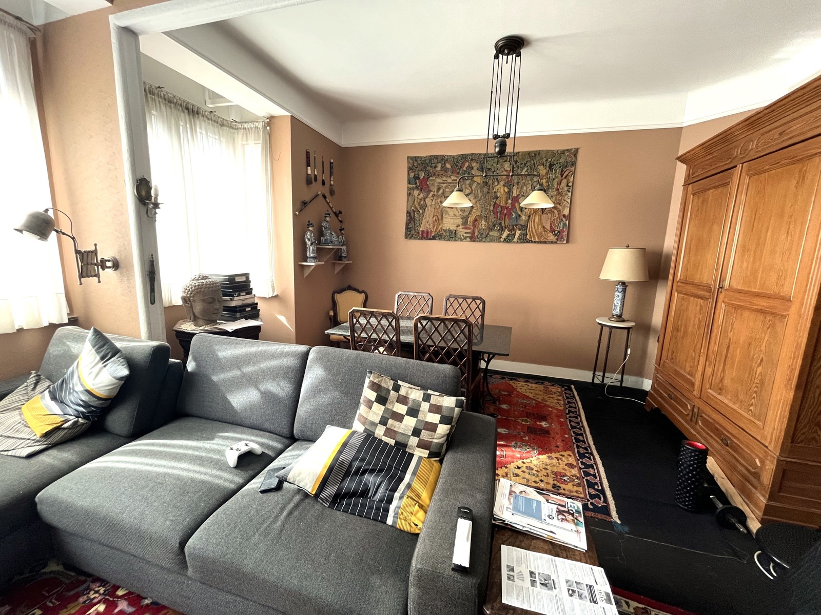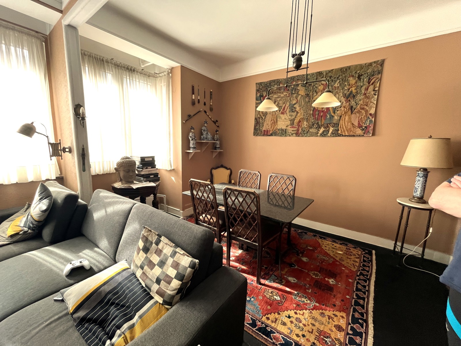 Idéalement situé au 2 ème étage d'un petit immeuble des années'30,dans le quartier ULB-cimetière d'Ixelles,proche de tout les commerces,restaurants et à un jet de pierre du Bois de la Cambre,nous vous proposons cet appartement loué et à raffraichir. Hall d'entrée,vaste living de 35 m²,salle de bain,wc séparé,débarras,grande chambre à l'arrière,cuisine équipée et petite terrasse. Possibilité aisée de faire une seconde chambre à coucher (2 chambres initialement-R.U.) Très faibles charges de copropriété (chaudière et compteurs individuels,pas d'ascenceur),parlophone,cave,local vélo en sous-sol,beau potentiel. Infos et visites:0475 48 44 11