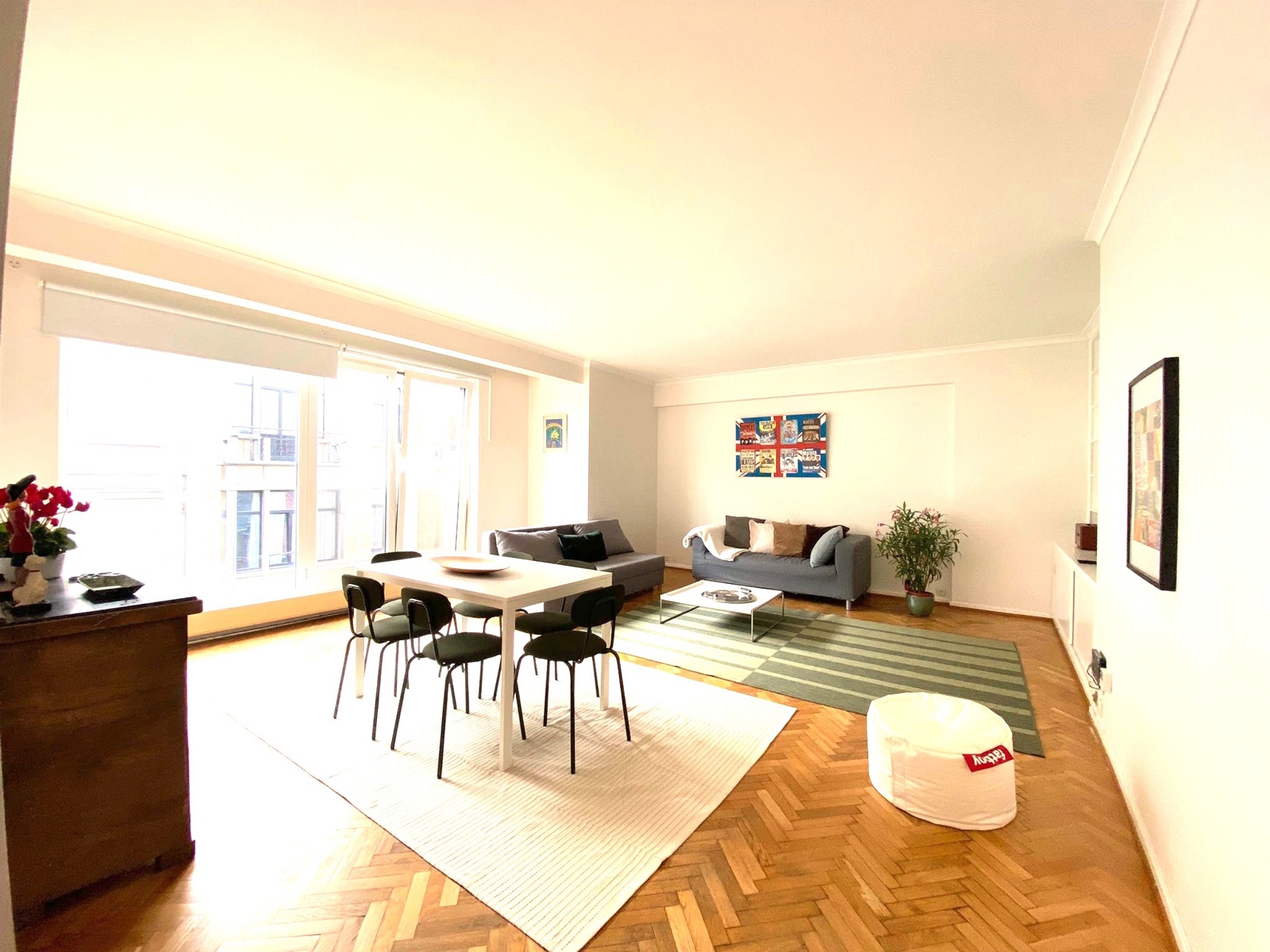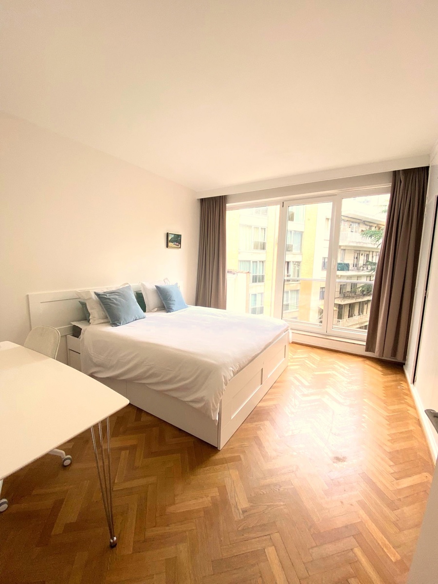 Situé au 3 ème étage d'un immeuble bien entretenu,sur une des rues ultra convoitée d'Ixelles,proche de l'Av.Louise et de l'Abbaye de la Cambre,du chatelain et de toutes les commodités (transports en commun,magasins galeries d'art,bois de la Cambre),lumineux appartement se présentant ainsi:vaste hall d'entrée avec vestiaire et wc ,cuisine équipée,grand living pourvu d'un superbe parquet à baton rompus,une chambre coté rue.
