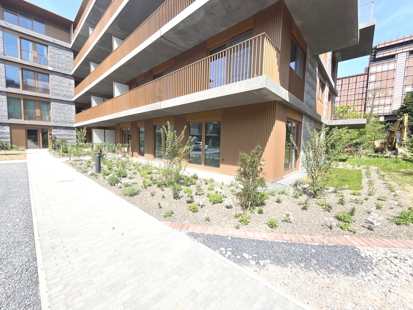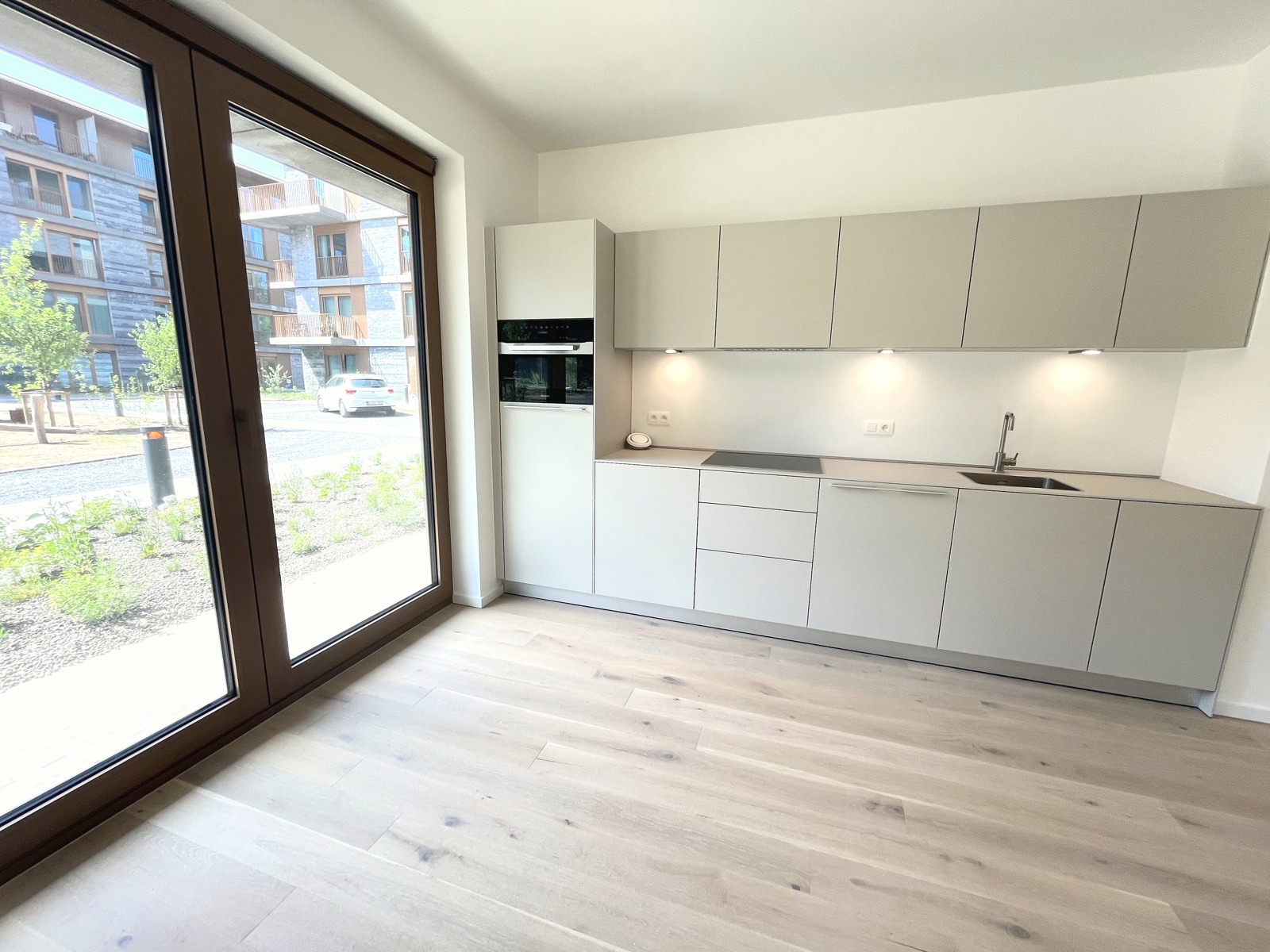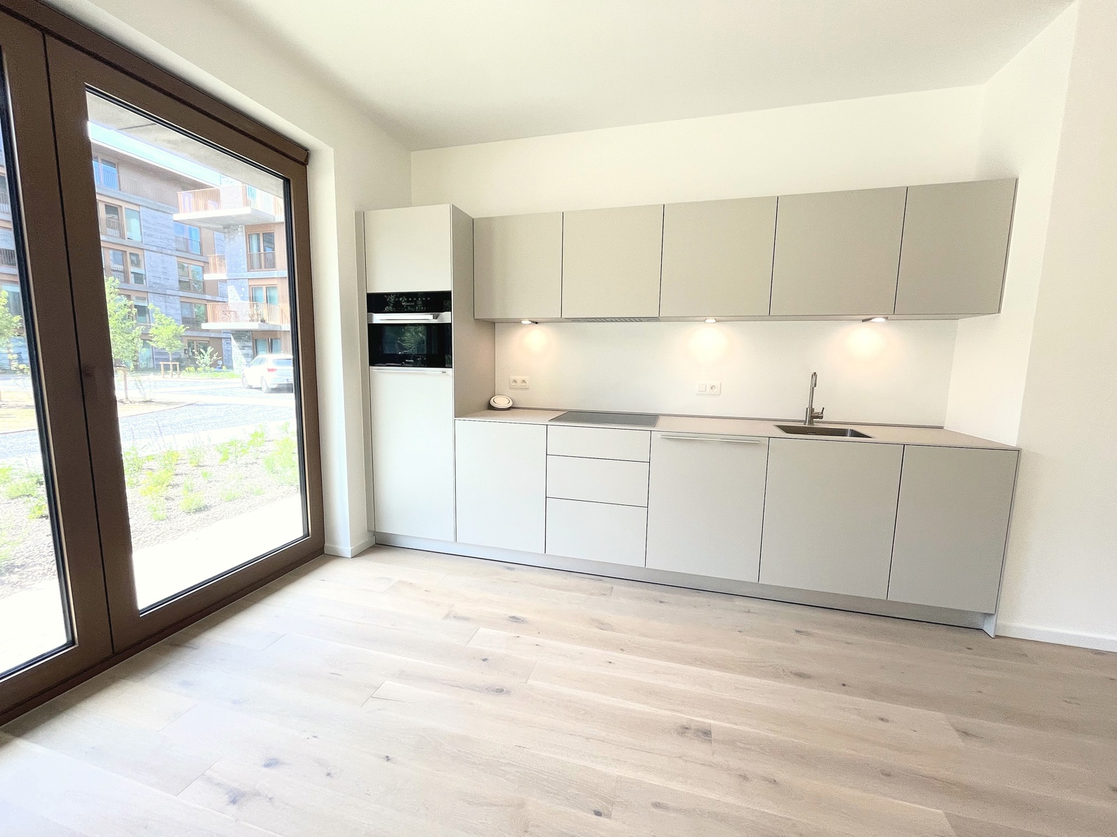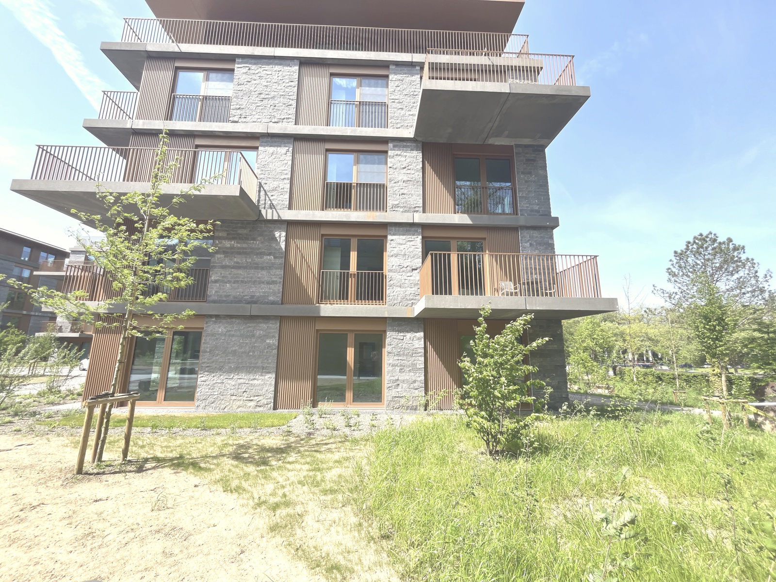 dans un bel immeuble tout neuf conciliant modernité et tradition appartement de standing, jamais occupé, situé au rez de chaussée et se présentant ainsi:hall d'entrée,wc invité,chambre avec sa salle de douche attenante,vaste living et cuisine USA Bulthaup,grandes baies vitrées s'ouvrant sur l'extérieur,2 ème chambre à coucher et sa salle de douche (vasque,douche à l'Italienne,wc),pièce buanderie.