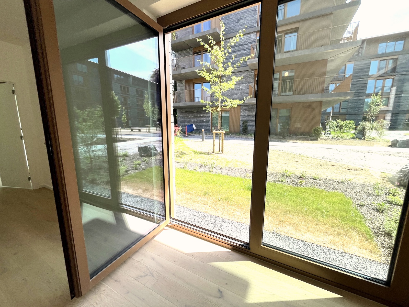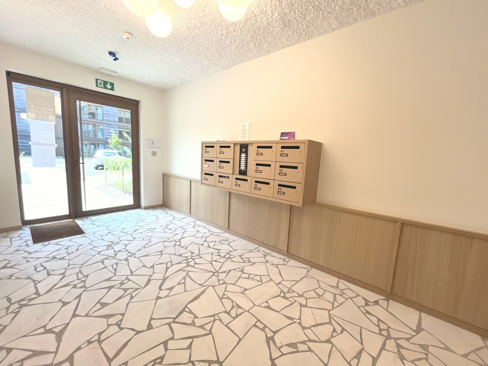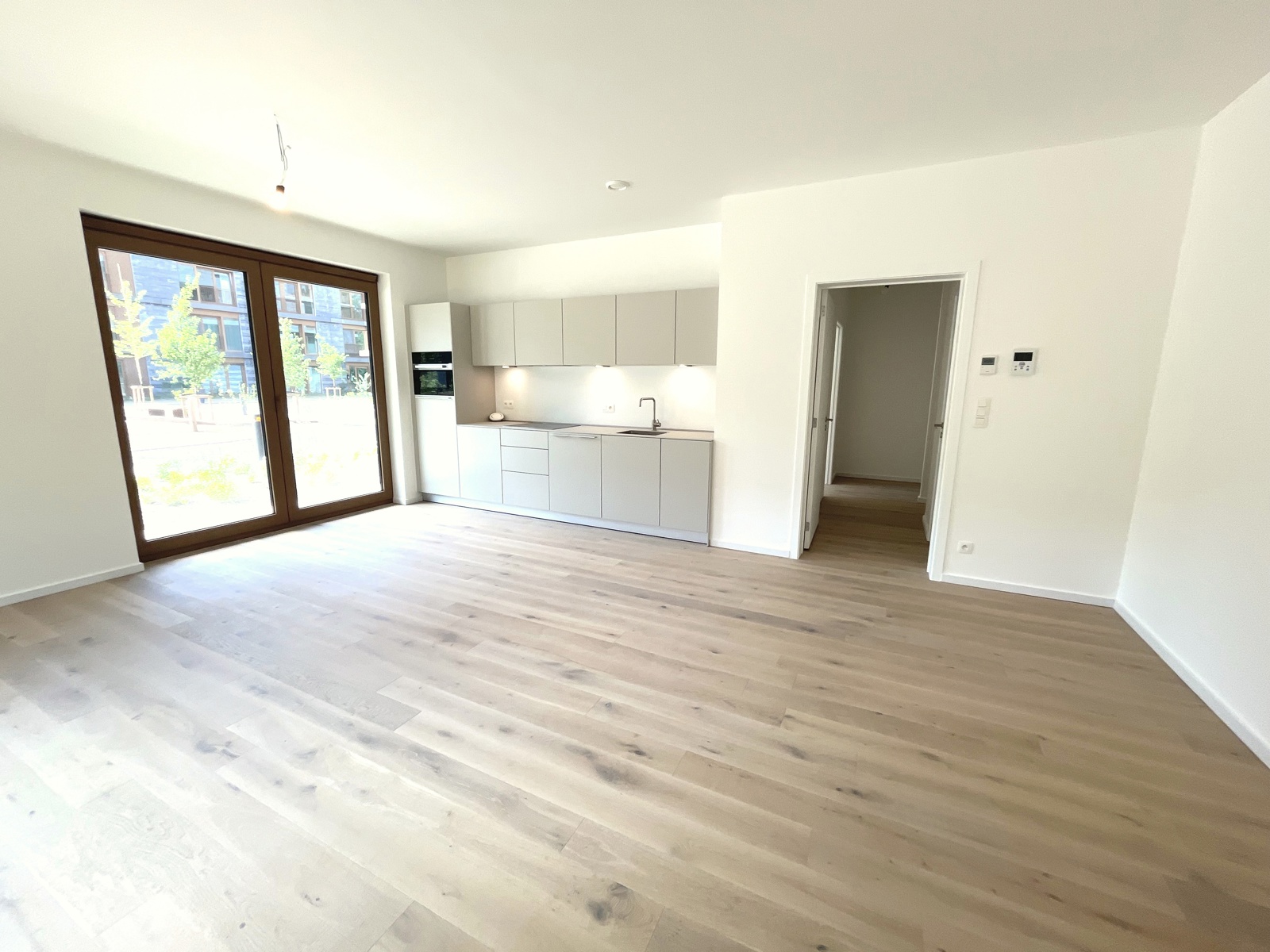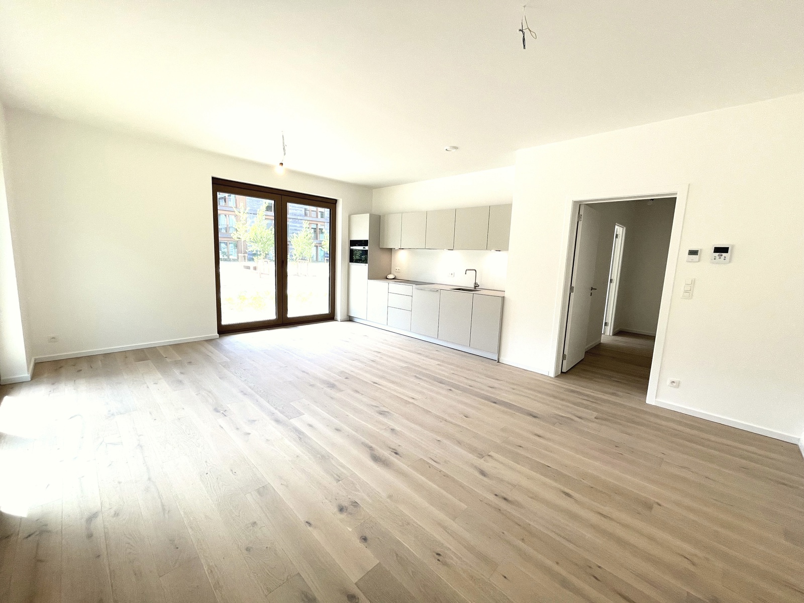 dans un bel immeuble tout neuf conciliant modernité et tradition appartement de standing, jamais occupé, situé au rez de chaussée et se présentant ainsi:hall d'entrée,wc invité,chambre avec sa salle de douche attenante,vaste living et cuisine USA Bulthaup,grandes baies vitrées s'ouvrant sur l'extérieur,2 ème chambre à coucher et sa salle de douche (vasque,douche à l'Italienne,wc),pièce buanderie.