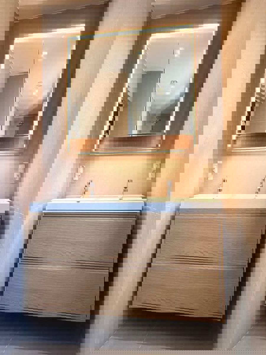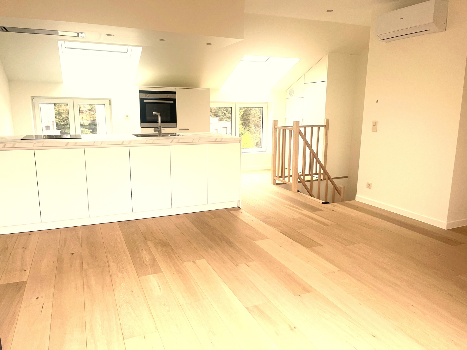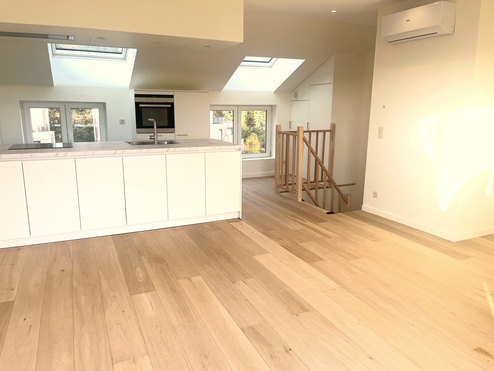 Plancher en chêne semi massif est de 1er choix,le système de chauffage est une pompe à chaleur qui génère à la fois chauffage et air conditionné. Un système de ventilation double flux est également installé.