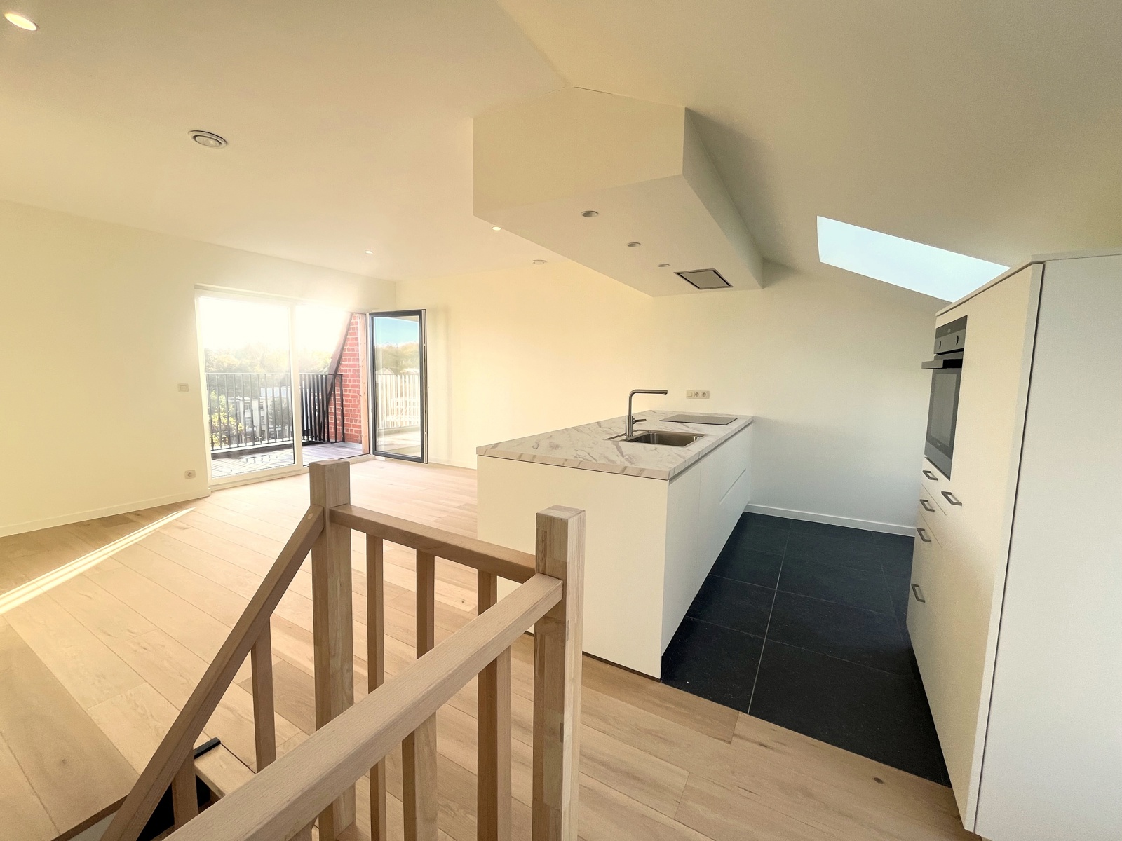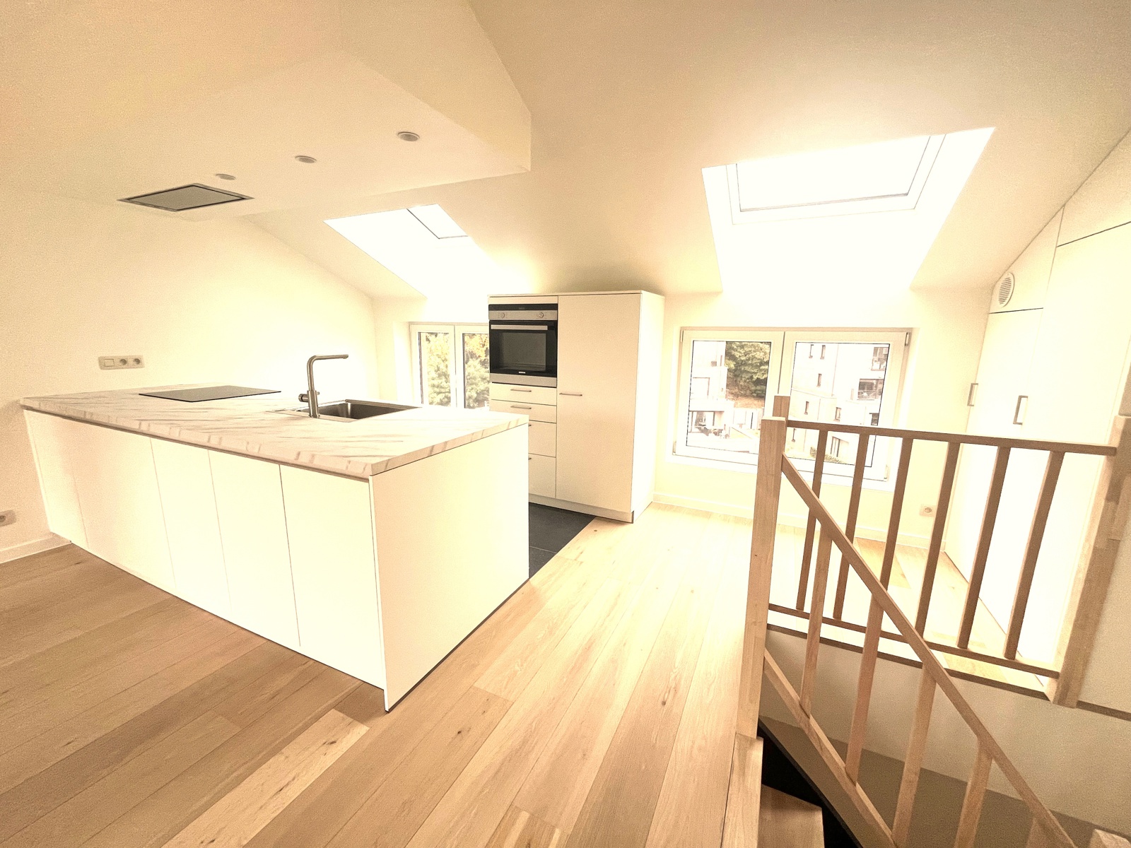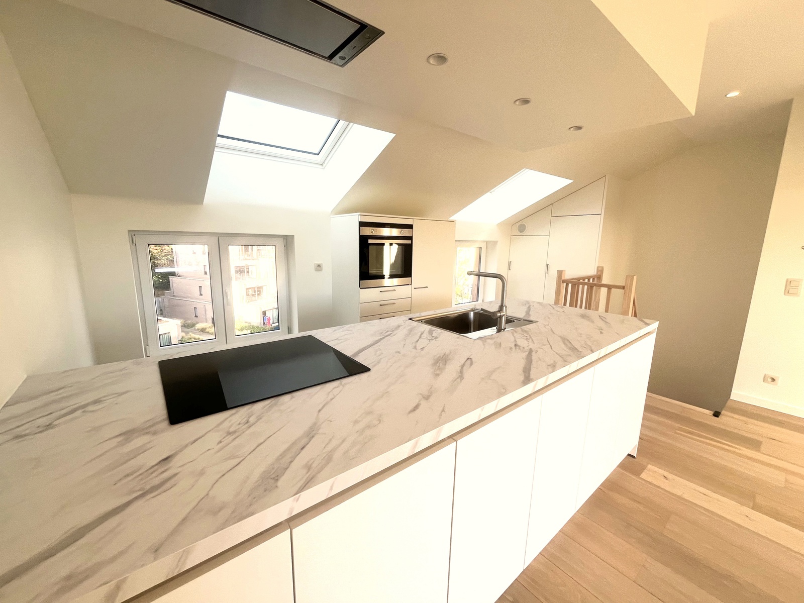 Niché au 3 et 4 ème étages d'une nouvelle petite copropriété sans ascenseur et avec faibles charges;superbe et lumineux penthouse -duplex neuf de deux chambres et bureau avec terrasse.