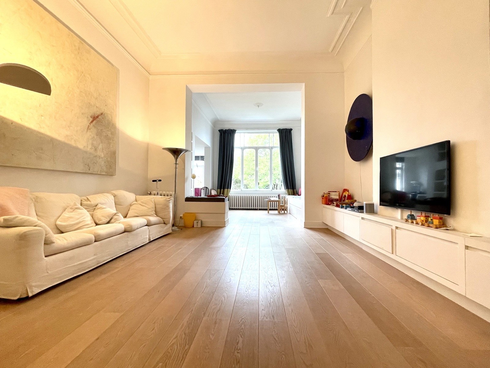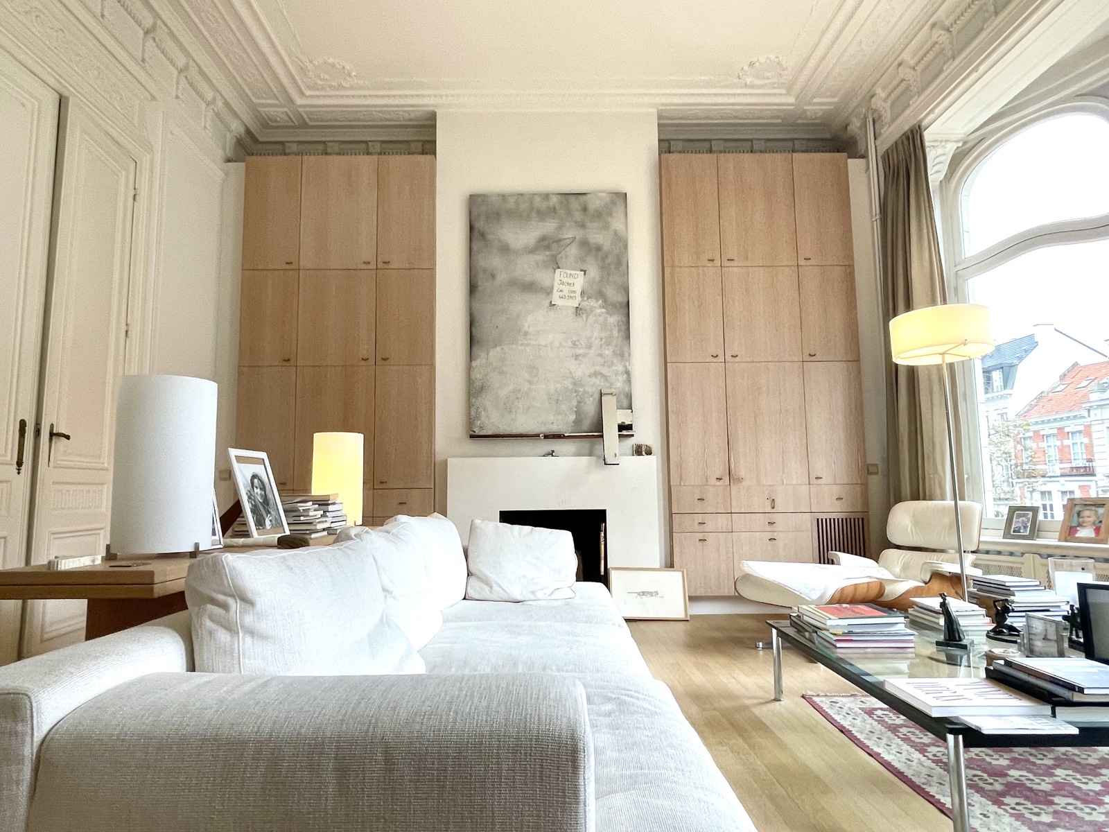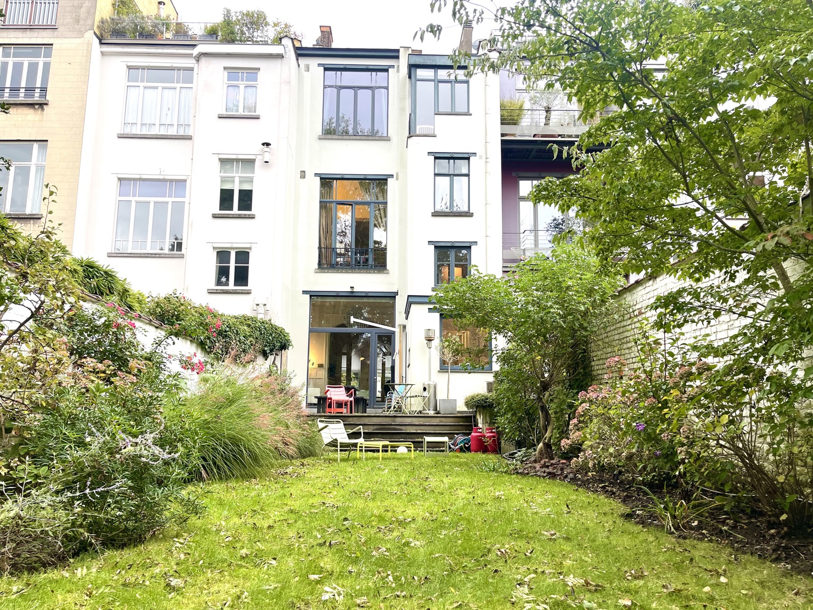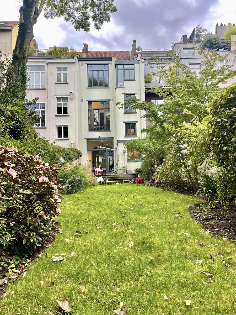 Superbe maison de maître "Beaux Arts" de 1912 idéalement située dans le très prisé quartier d'Ixelles "Brugmann" sur une prestigieuse avenue arborée avec promenade centrale. Elle possède une terrasse et un très beau jardin ainsi qu'un garage. La maison a bénéficié d'une magnifique rénovation de qualité. Actuellement 5 chambres mais possibilité de nombreux changements de par ses 430m2 habitables. Les éléments ornementaux qualifiants une maison de maître d'époque ont été entretenus et magnifiés (parquet chêne, huisseries, plafonds à encorbellements et moulures,cheminées en marbre,,..) Entrée par un bel hall d"entrée en marbre avec une magnifique hauteur sous plafond(moulurés). A ce niveau vous accédez aux 3 grandes pièces inondées de lumiere. Meubles intégrés contemporains en chêne ,bibliothèque etc..Le charme d'antan associé à la modernité et au bon gout en font un coup de coeur prêt à y habiter. Trois grandes pièces en enfilade donnant accès à la large terrasse et au jardin sans vis à vis direct. Egalement une belle cuisine Bulthaup hyper équipée avec électroménagers Miele et ilot de cuissons. Elle benéficie également d'une vue sur le jardin paysagé L'étage suivant est constitué d'un très vaste salon donnant sur l'avenue, de la master room, d'un grand bureau donnant vue sur le jardin ainsi que d'une salle de bain. le dernier étage offre encore 3 chambres, un bureau,parquet chêne, salle de bain. Encore un étage avec deux chambres ainsi qu'un grenier avec mezzanine. Possibilité de mettre en oeuvre un permis accepté en 2016 afin de faire un appartement des deux derniers étages avec terrasse. PEB D Chaudière à condensation récente, alarme, etc
