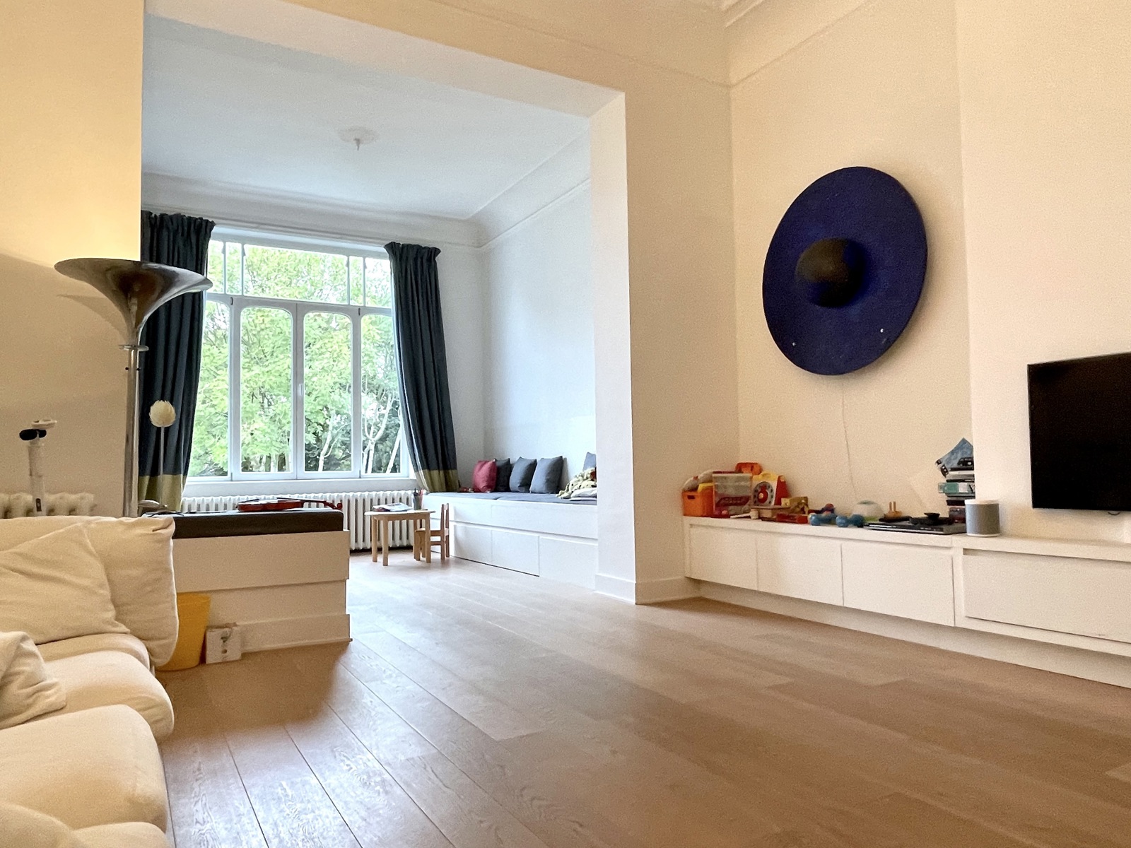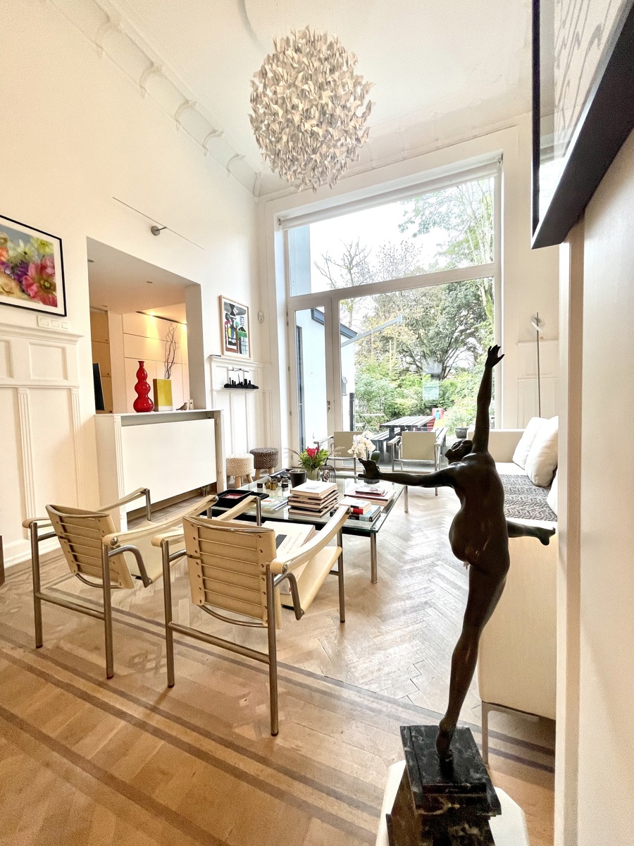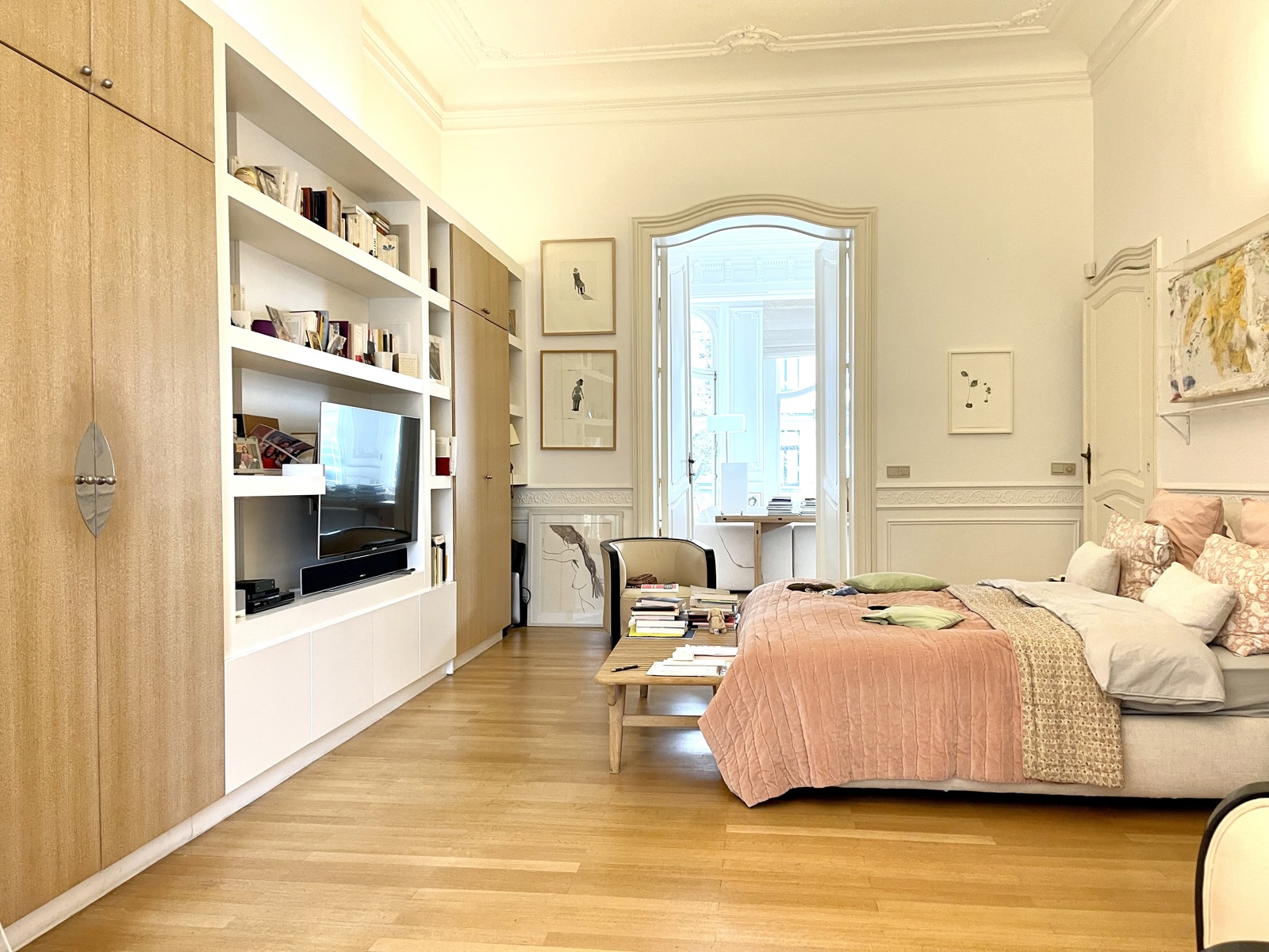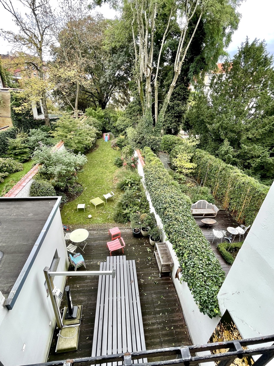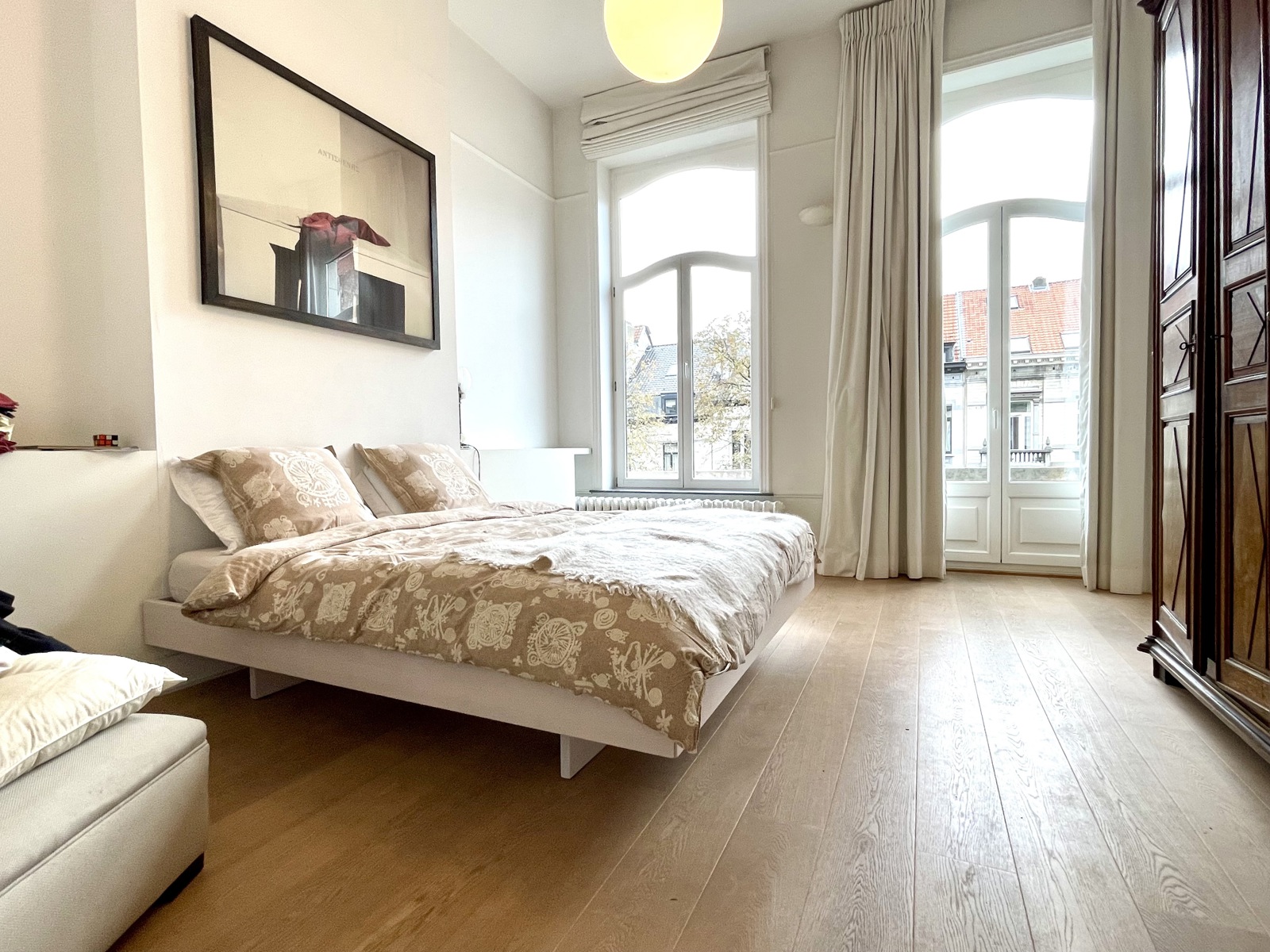 Superbe maison de maître "Beaux Arts" de 1912 idéalement située dans le très prisé quartier d'Ixelles "Brugmann" sur une prestigieuse avenue arborée avec promenade centrale. Elle possède une terrasse et un très beau jardin ainsi qu'un garage. La maison a bénéficié d'une magnifique rénovation de qualité. Actuellement 5 chambres mais possibilité de nombreux changements de par ses 430m2 habitables. Les éléments ornementaux qualifiants une maison de maître d'époque ont été entretenus et magnifiés (parquet chêne, huisseries, plafonds à encorbellements et moulures,cheminées en marbre,,..) Entrée par un bel hall d"entrée en marbre avec une magnifique hauteur sous plafond(moulurés). A ce niveau vous accédez aux 3 grandes pièces inondées de lumiere. Meubles intégrés contemporains en chêne ,bibliothèque etc..Le charme d'antan associé à la modernité et au bon gout en font un coup de coeur prêt à y habiter. Trois grandes pièces en enfilade donnant accès à la large terrasse et au jardin sans vis à vis direct. Egalement une belle cuisine Bulthaup hyper équipée avec électroménagers Miele et ilot de cuissons. Elle benéficie également d'une vue sur le jardin paysagé L'étage suivant est constitué d'un très vaste salon donnant sur l'avenue, de la master room, d'un grand bureau donnant vue sur le jardin ainsi que d'une salle de bain. le dernier étage offre encore 3 chambres, un bureau,parquet chêne, salle de bain. Encore un étage avec deux chambres ainsi qu'un grenier avec mezzanine. Possibilité de mettre en oeuvre un permis accepté en 2016 afin de faire un appartement des deux derniers étages avec terrasse. PEB D Chaudière à condensation récente, alarme, etc