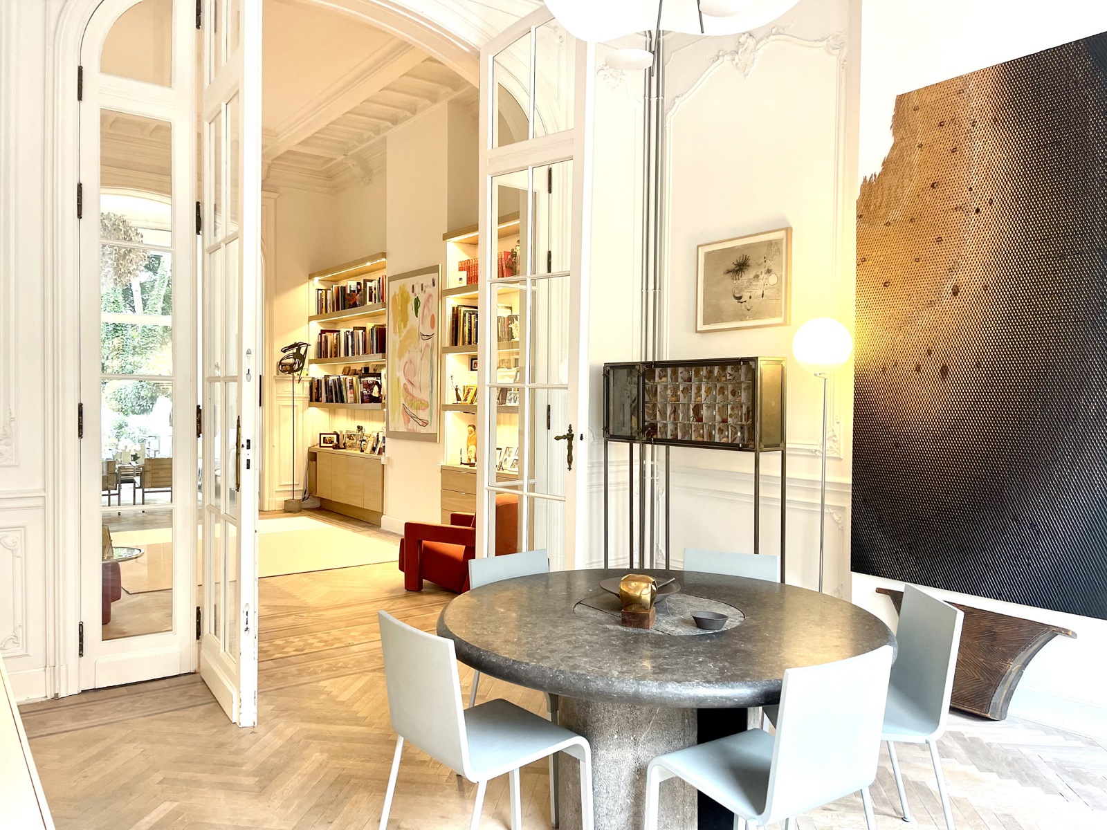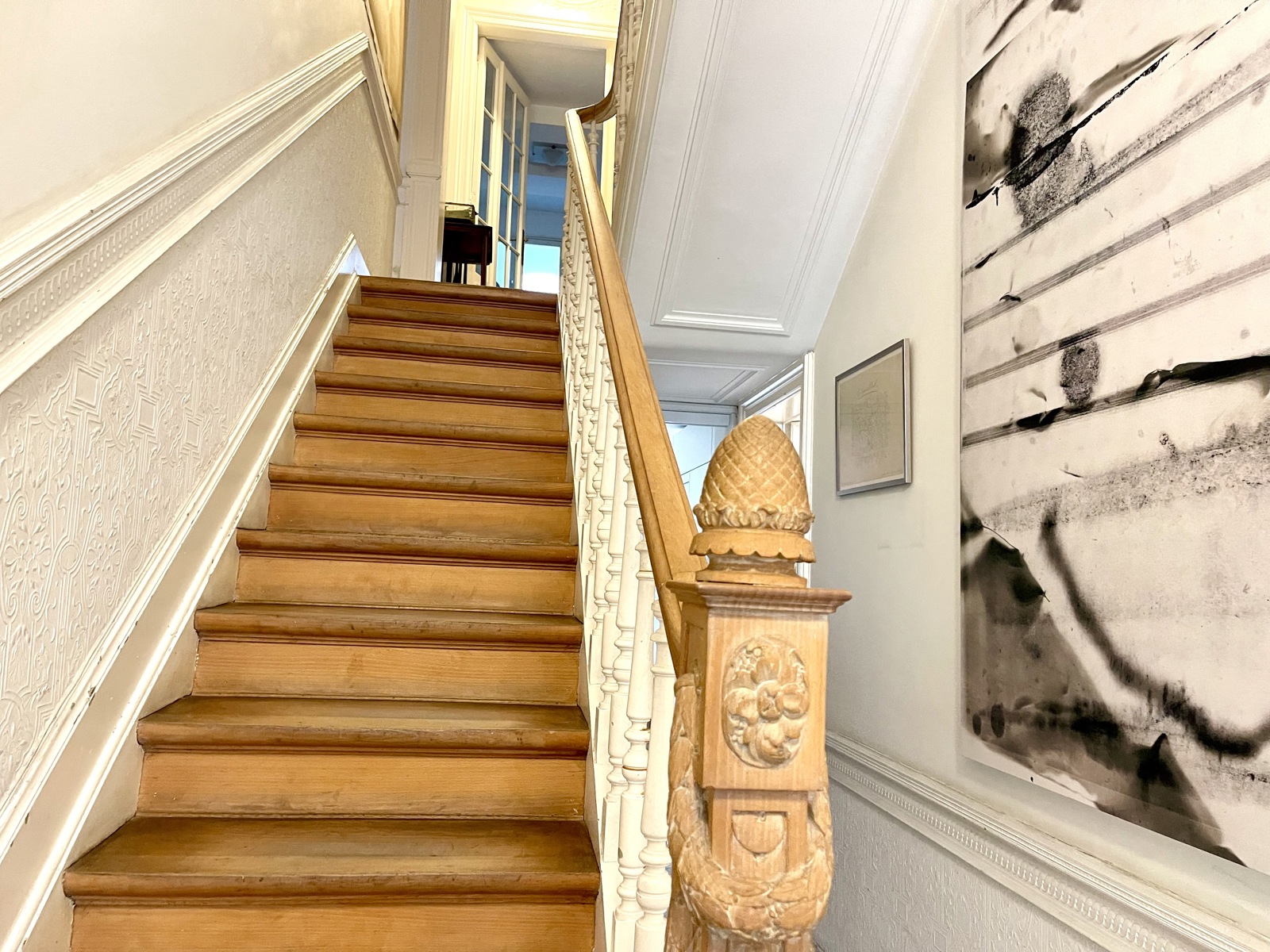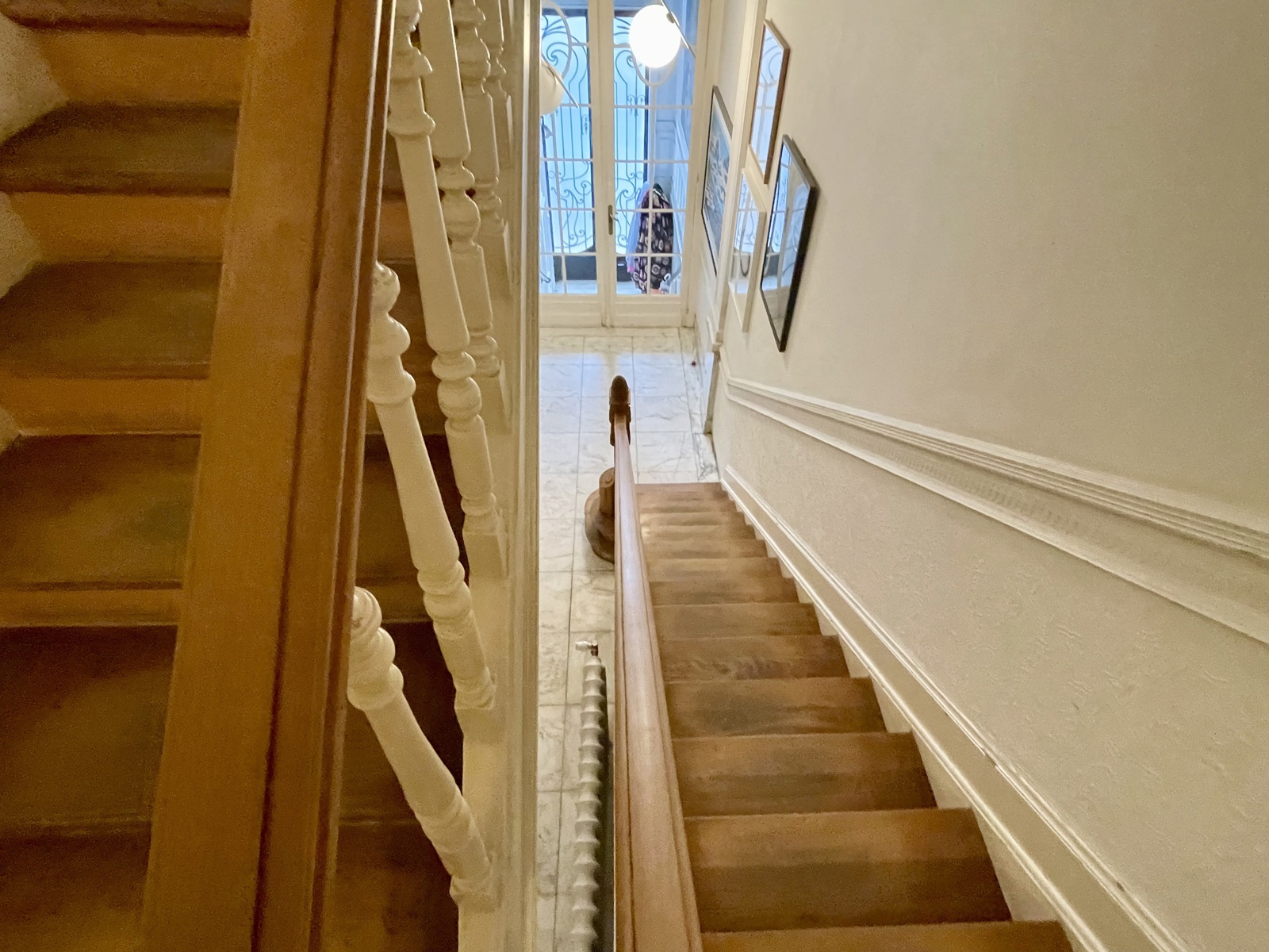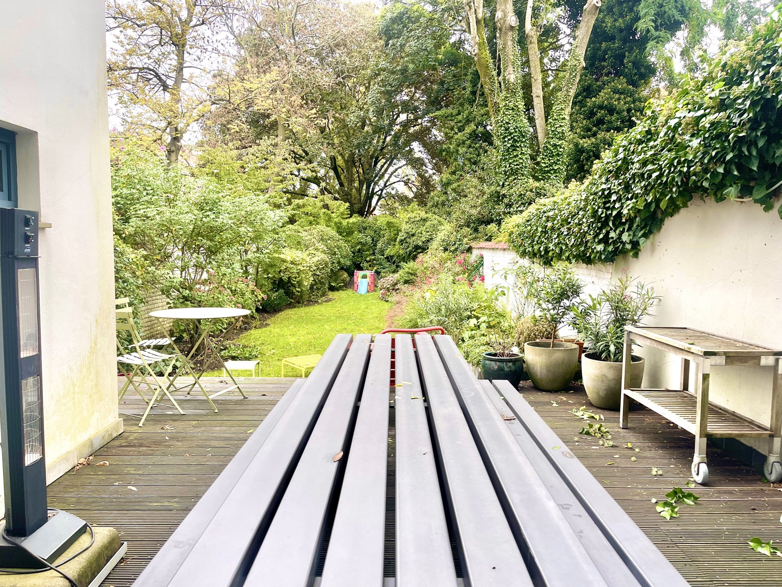Superbe maison de maître "Beaux Arts" de 1912 idéalement située dans le très prisé quartier d'Ixelles "Brugmann" sur une prestigieuse avenue arborée avec promenade centrale. Elle possède une terrasse et un très beau jardin ainsi qu'un garage. La maison a bénéficié d'une magnifique rénovation de qualité. Actuellement 5 chambres mais possibilité de nombreux changements de par ses 430m2 habitables. Les éléments ornementaux qualifiants une maison de maître d'époque ont été entretenus et magnifiés (parquet chêne, huisseries, plafonds à encorbellements et moulures,cheminées en marbre,,..) Entrée par un bel hall d"entrée en marbre avec une magnifique hauteur sous plafond(moulurés). A ce niveau vous accédez aux 3 grandes pièces inondées de lumiere. Meubles intégrés contemporains en chêne ,bibliothèque etc..Le charme d'antan associé à la modernité et au bon gout en font un coup de coeur prêt à y habiter. Trois grandes pièces en enfilade donnant accès à la large terrasse et au jardin sans vis à vis direct. Egalement une belle cuisine Bulthaup hyper équipée avec électroménagers Miele et ilot de cuissons. Elle benéficie également d'une vue sur le jardin paysagé L'étage suivant est constitué d'un très vaste salon donnant sur l'avenue, de la master room, d'un grand bureau donnant vue sur le jardin ainsi que d'une salle de bain. le dernier étage offre encore 3 chambres, un bureau,parquet chêne, salle de bain. Encore un étage avec deux chambres ainsi qu'un grenier avec mezzanine. Possibilité de mettre en oeuvre un permis accepté en 2016 afin de faire un appartement des deux derniers étages avec terrasse. PEB D Chaudière à condensation récente, alarme, etc