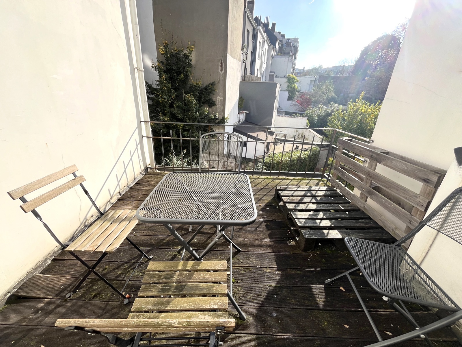 Permis d'urbanisme octroyé (arrivant à échéance) pour 5 unités (Rez-ss-sol:duplex-2 chambres avec jardin à rénover-au 1er étage:appart 1 chambre bon état-2ème étage:1 studio avant et un appart 1 chambre à l'arrière avec terrasse de 16m² en bon état-dernier étage appart.2 chambres à rénover).
